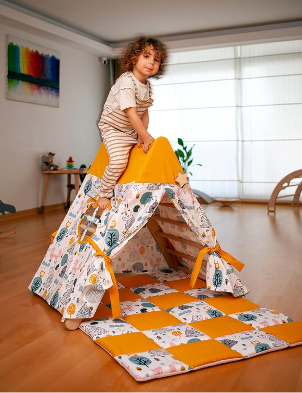The Climber Pikler Triangle lets your kiddos climb safely up, up, and away while developing their gross motor skills. Equally perfect for building forts, sliding, and imaginative play.