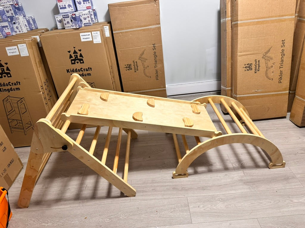 7in1 Montessori Pikler Triangle Set – Foldable Wooden Climber for Toddlers Indoor Playground (Ages 1–6)