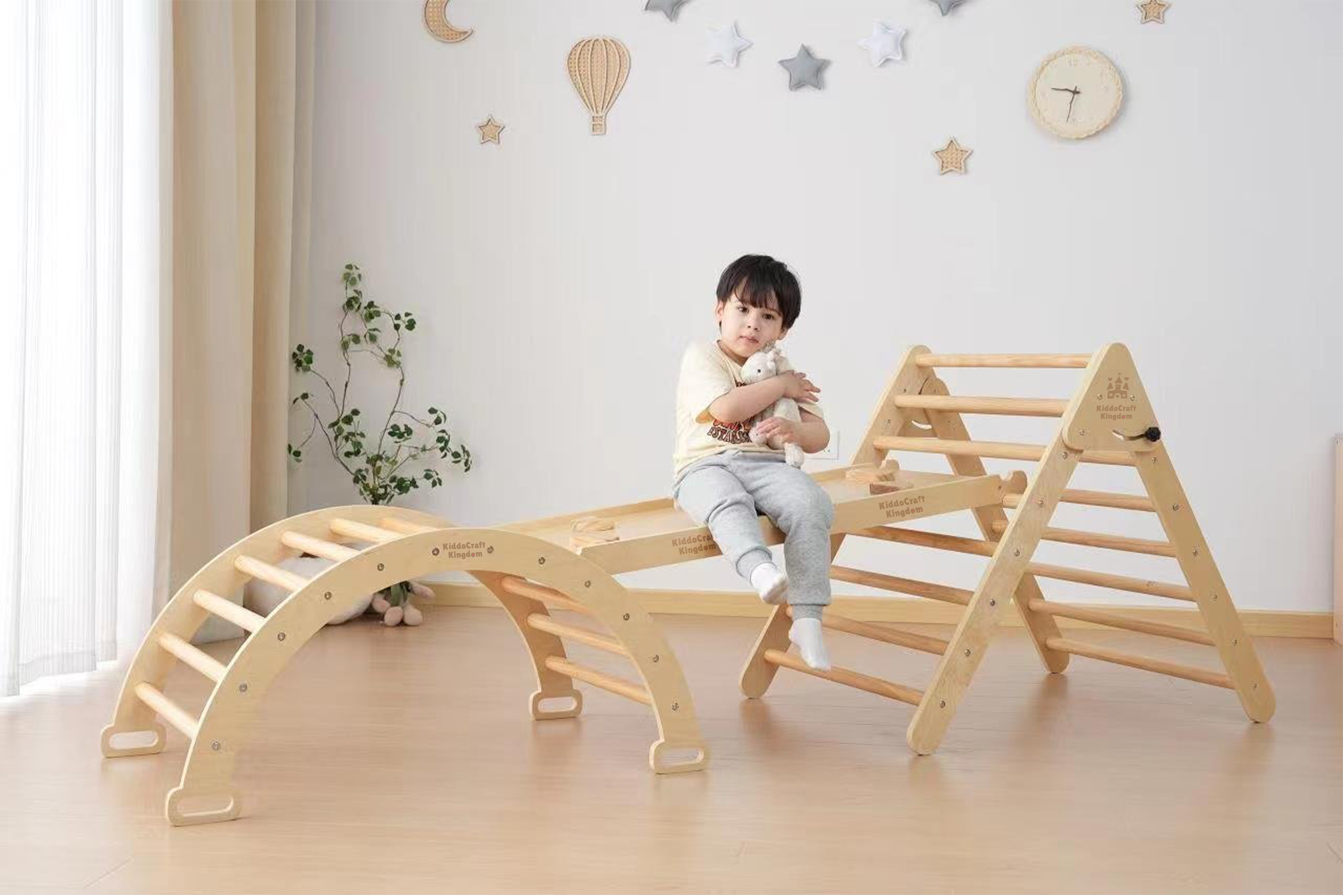 🧸 Create an enriching play environment for your little one with the KiddoCraft Kingdom 7-in-1 Foldable Pikler Triangle Climbing Set.